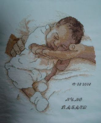 Fiz este lindo quadro com muito amor, para oferecer ao meu afilhado que é tão lindo e tão fofinho... bem, este quadro já era para o ter oferecido pela pascoa do ano passado, mas como não tive tempo de o acabar (hehehehe) vou oferecer-lho este ano, embora ainda falta passar por água, passar a ferro e colocar a moldura... depois é so ver se a mãezinha dele, vai ou não gostar...